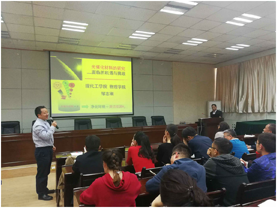 2018年4月8日,南京大学邹志刚院士应我校邀请,莅临我校进行学术交流活动。化学化工学院、材料科学与工程学院部分教师和学生参加了交流活动。