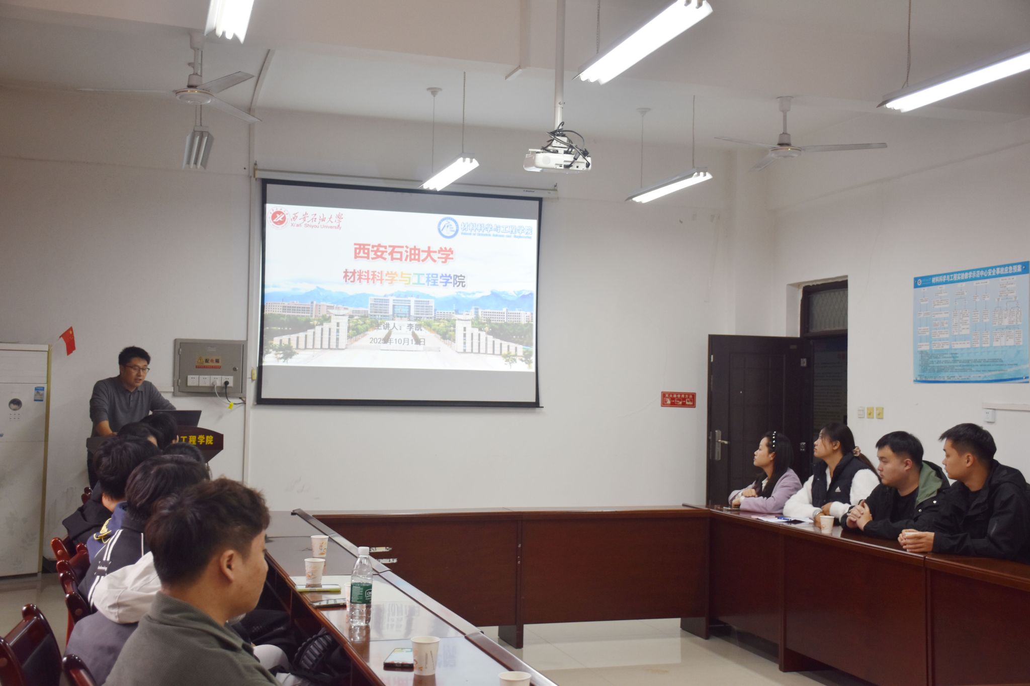 会议伊始,李凯老师系统梳理了学院的发展历程、学科架构与特色方向,重点展示了学院师资力量,包括高层次人才队伍、导师团队的科研方向与学术成就。李凯老师还详细介绍了学院在新能源材料、先进焊接技术、材料腐蚀与防护等领域的标志性科研成果和前沿进展,并展望了学科未来的发展方向与广阔前景。他鼓励有志于深造的同学要立足国家战略需求,结合个人兴趣,早日确立目标,在材料科学的广阔天地中实现自我价值。