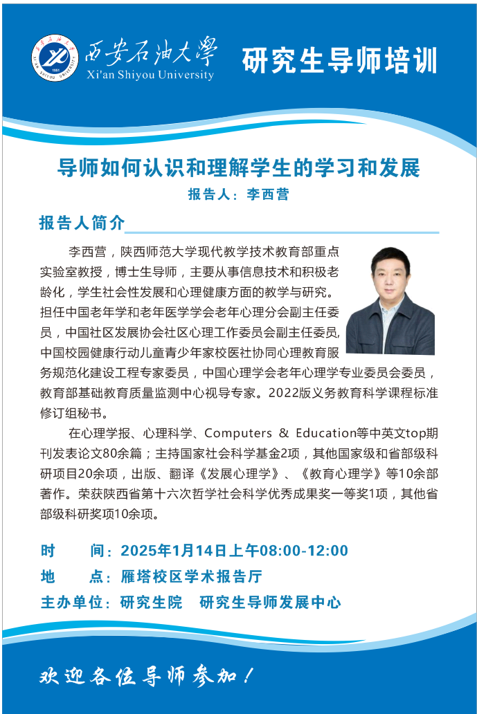 报告地点:雁塔校区会议中心第四会议室